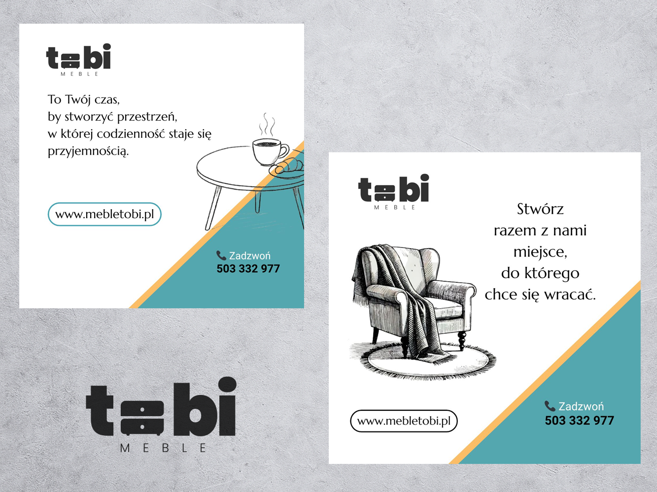 - Projekty materiałów (baner, ulotka, wizytówka, cover Facebook)